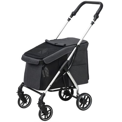 Poussette chien 4 roues pliable avec bandoulière - nombreux équipements - noir gris clair