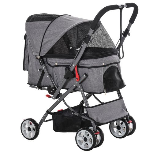 PawHut Poussette pliable animaux chien chat 2 en 1, nacelle amovible bandoulières 4 roues avec frein tissu 600D Oxford 81 x 58 x 97,5 cm gris