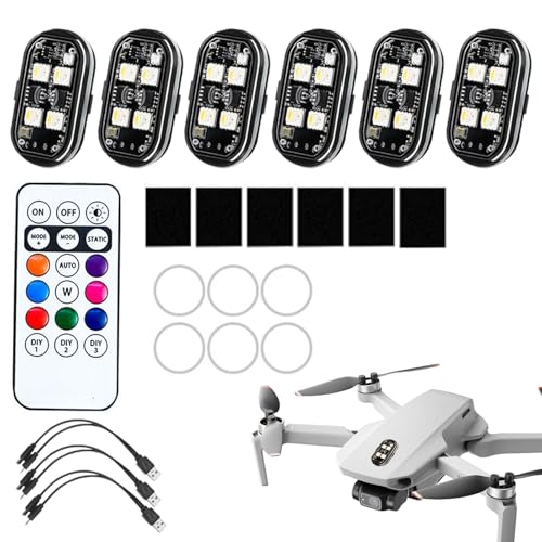Feu Stroboscopique Voiture - 6 Pièces Lampe Drone Sans Fil,Télécommande LED Stroboscope Drone 8 Couleurs pour Hayon, Moto Tout-Terrain, Voiture, Poussette, Avion, Camion, Vélo, Scooter,