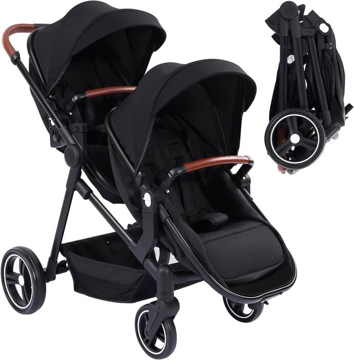 Poussette Double Légère Landau Pliable de Voyage Poussette Tandem Compacte Avec Siéges Réversibles Nacelle Bébé Charge Max 30 kg