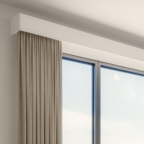 Cantonnière blanche à montage au plafond avec cantonnière de 4,6 m - Double rail - Barres de séparation en métal pour salon, chambre à coucher, hôtel, villa - Côté A 4,6 m