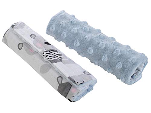 Medi Partners Épaulettes de ceinture pour poussettes sièges auto pour enfants bébé 100% Coton Minky 1 paire 18x13cm Double face poussette voiture de sport