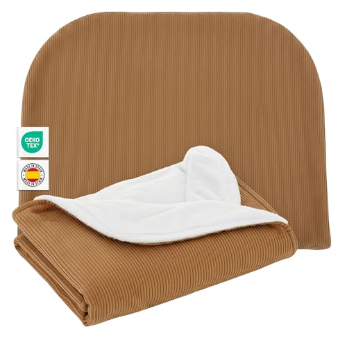 MIMUSELINA Couverture Bebe Naissance Hiver 90x70cm | Plaid Bebe Doux et Léger pour Lit Bébé et Poussette | Couverture Enfant Coton avec Intérieur Chaud | Fabriqué en Espagne | Latte