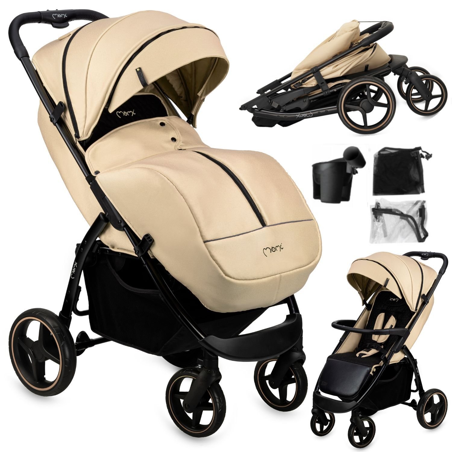 Poussette MoMi CLARA jusqu'à 22 kg - sac, moustiquaire, housse de pluie, porte-gobelet, couvre-pieds