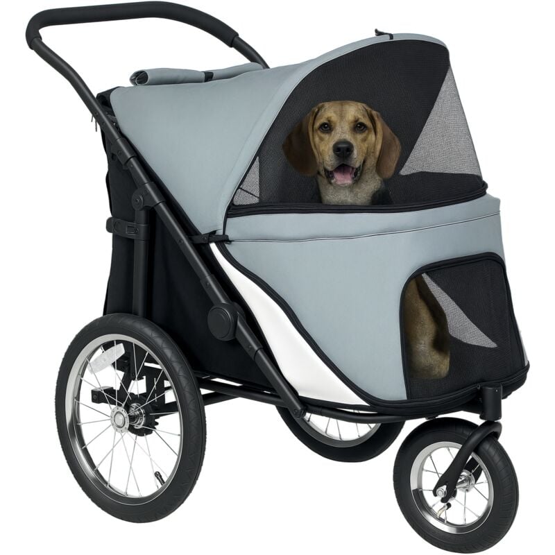 Poussette jogger pour chien pliable en un clic - panier de rangement, coussin lavable, attache, auvent réglable - gris