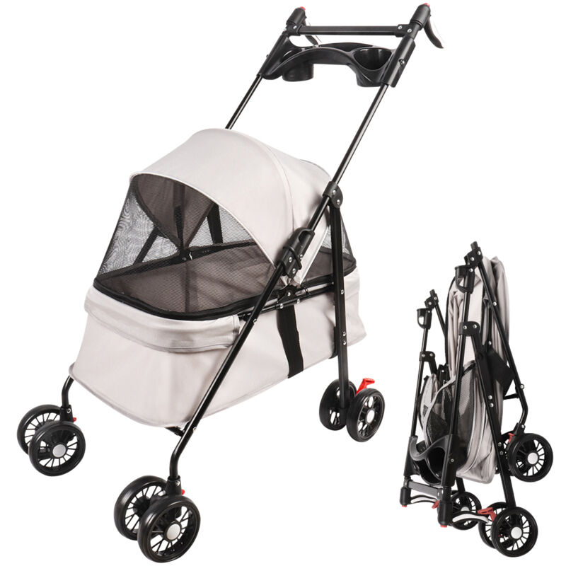 YITAHOME Poussette pliable pour chien et chat, 15 kg, avec 3 roues, fenêtres en filet, porte-gobelet et freins, convient aux animaux de compagnie de taille moyenne gris clair