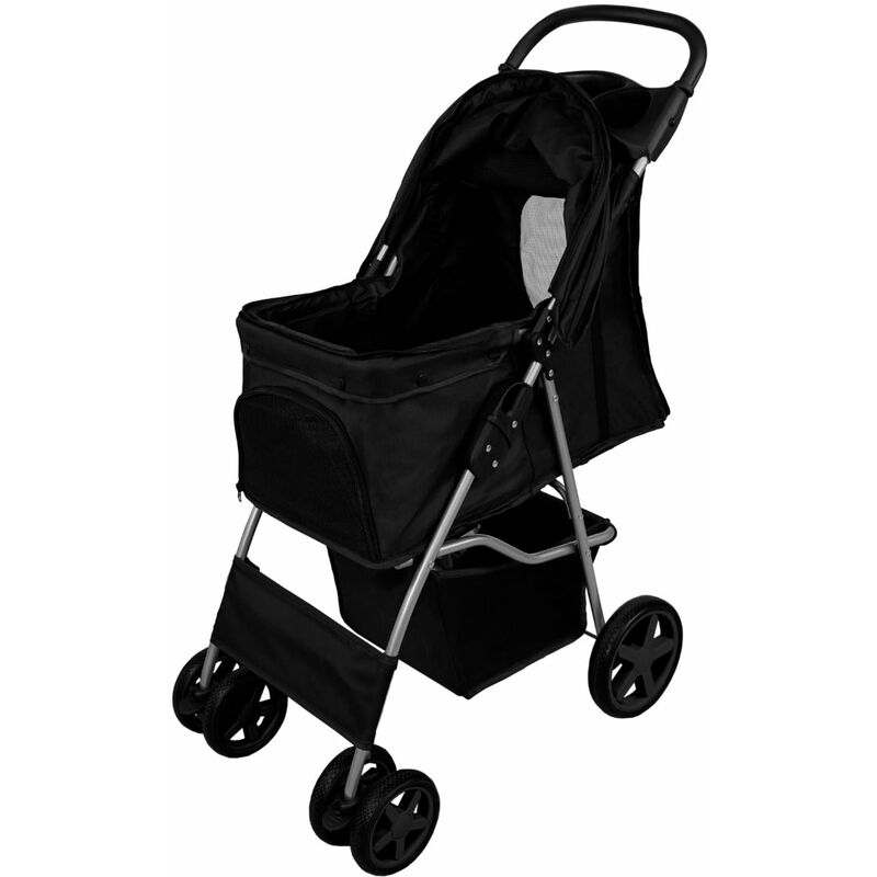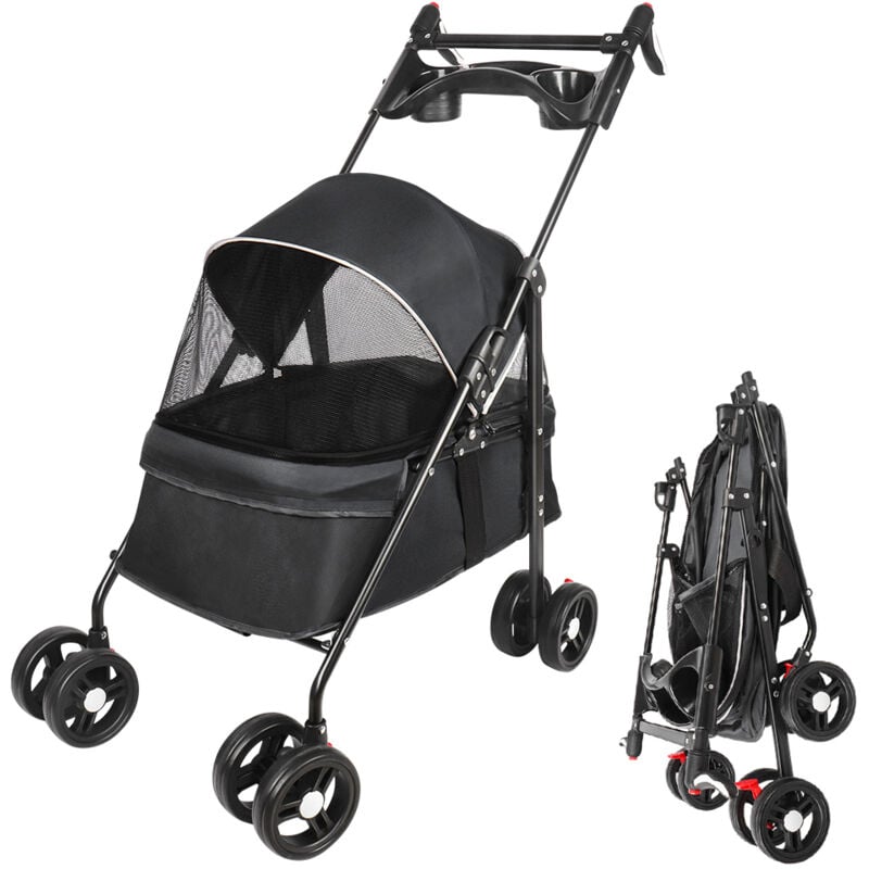 Monster-shop - Poussette Noire pour Chien Chat Animaux de Compagnie Jusqu'à 15KG Pliable - Acier Robuste -Compacte - Panier & Porte-Gobelet - Roues