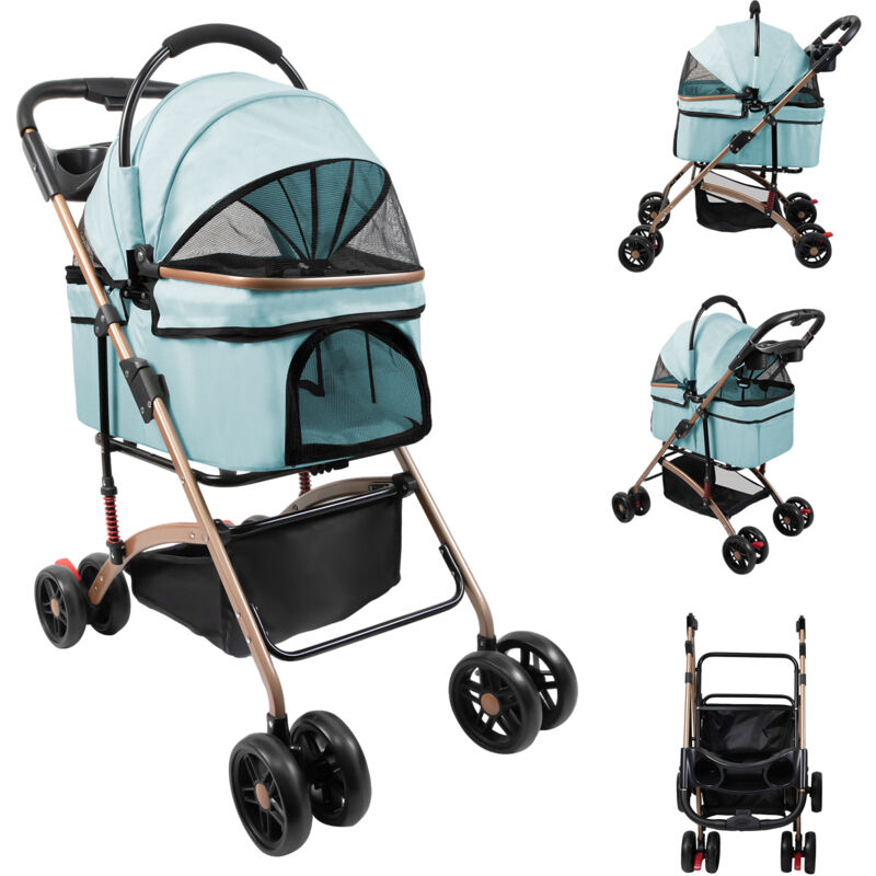 Poussette pliable pour chien de grande taille, landau pliable pour grand espace, poussette de voyage pour animaux de compagnie pour chat, chien et plus encore (bleu)