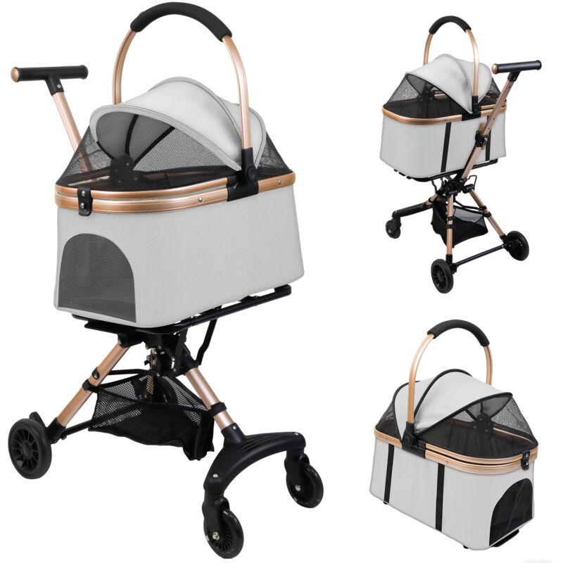 Poussette de luxe pour chien à 4 roues - Grande poussette pour animal domestique - Équipement pour animaux domestiques - Poussette de voyage pliable pour chat, chien et plus encore - Gris A