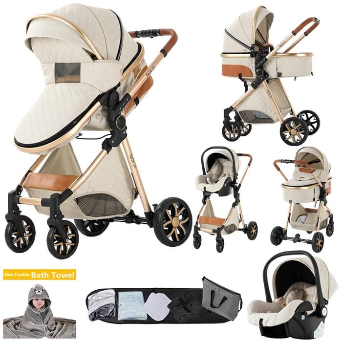 Poussette 3 en 1 Magic ZC Poussette Pousettes trio 3 en 1 Poussette pliable compacte Sac à main+Grand espace de rangement Blanc