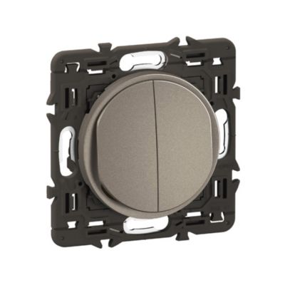 LEGRAND - Interrupteur Poussoir Double - 6A - Commande d'Eclairage Complète - A compléter avec une plaque - Titanium
