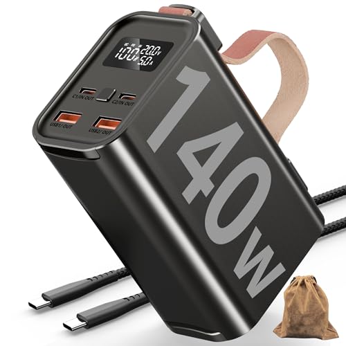 Power Bank 140W 50000mAh, Grand Chargeur Portable pour Ordinateur Portable avec écran Intelligent, 2 Ports USB de 140 W de Type C et 2 Ports USB de 30 W, avec 3 Modes d'éclairage, Bureau, Affaires
