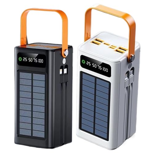 Batterie Externe Solaire, Chargeur Solaire 50000mAh Power Bank Haute Solaires Capacité Chargeur Portable, Équipement de Survie avec Éclairage, Câbles Intégrés, pour Road Trip, Randonnée, Camping