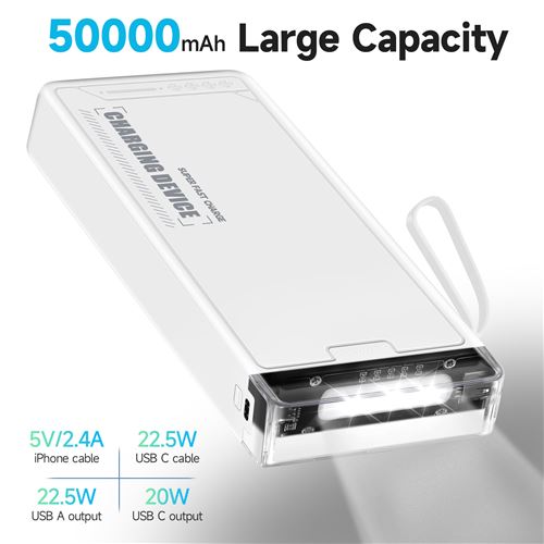 Funsee Batterie Externe Portable 50000mah Charge Rapide Power Bank, Batterie Chargeur Mobile Pour Tous Les Téléphones - Blanc