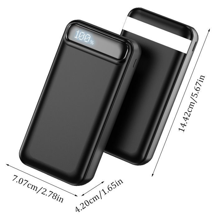 XCC 50000 MAh Grande capacité Power Bank Miroir Écran d'affichage numérique Charge Rapide Livré avec Une Banque d'alimentation partagée (Color : Black, Size : 50000mAh)