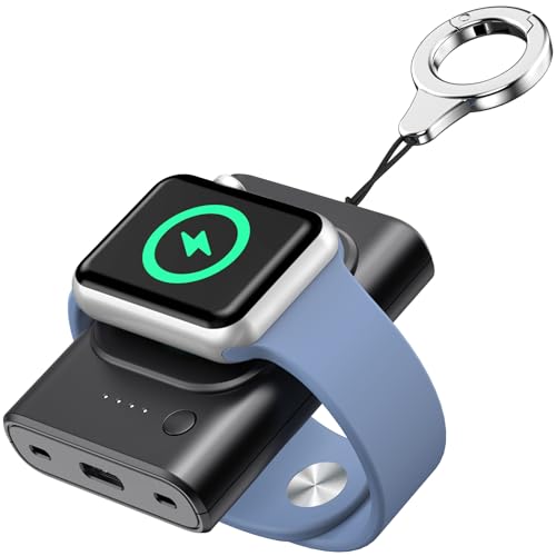 Liocwocne Portable Watch Wireless Charging Bank for Apple Watch, Mini Compact Charging for Iwatch Keychain, Magnetic Wireless Travel Power 9/8/7/6/Se/5/4/3/2(1pc)