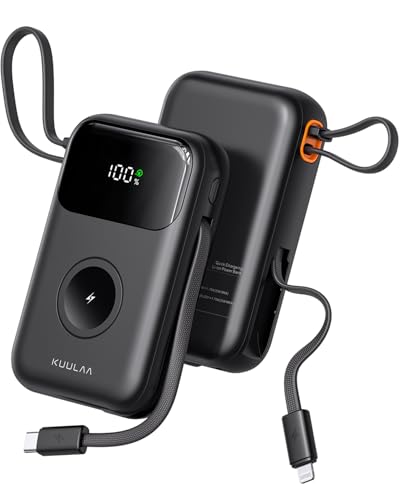 Kuulaa Batterie Externe 10000mAh PD20W Charge Rapide, Batterie Externe Magnétique pour Apple Watch, Power Bank avec 2 Câbles Intégrés Compatible avec iPhone Watch - Noir