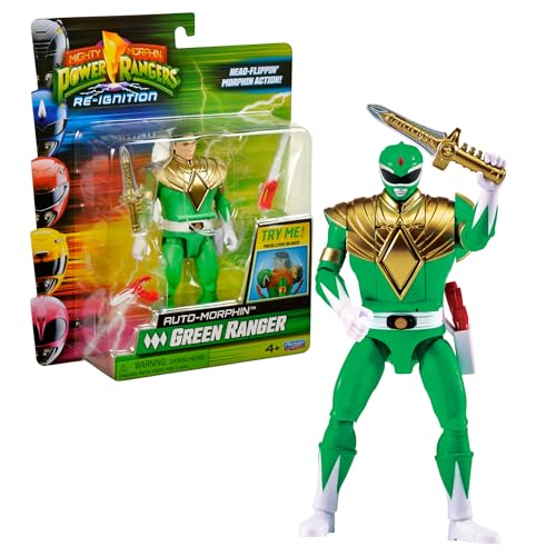 Power Ranger - Auto-Morphin, Figurine articulée 2-en-1, 15 cm, Ranger Vert - Tommy, pour Les Enfants dès 4 Ans, PWG08