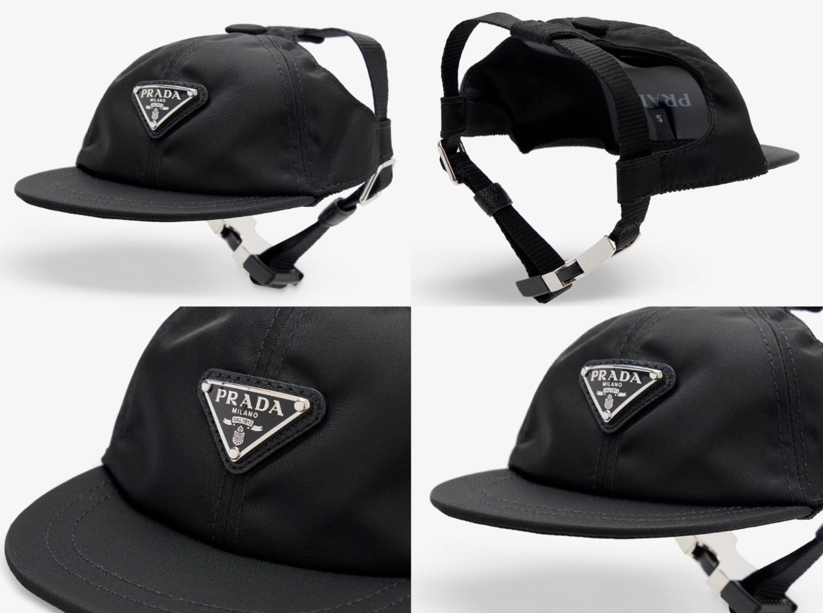 PRADA PETS Bonnet Seau Baseball Cap Chien Logo Rain Taffeta Noir M Bnwt