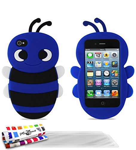 Coque Souple Ultra-Slim APPLE IPHONE 4S [L'Abeille Premium] [Bleu nuit] de MUZZANO + 3 Films de protection écran "UltraClear" + STYLET et CHIFFON MUZZANO® OFFERTS - La Protection Antichoc ULTIME, ELEGANTE ET DURABLE pour votre APPLE IPHONE 4S