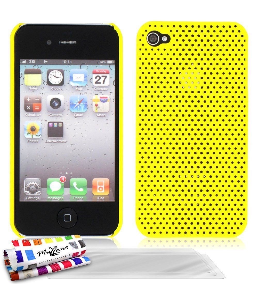 COQUE CASE iPHONE 4 4S " ALVÉOLIA PREMIUM " JAUNE SILICONE RIGIDE (TPU)