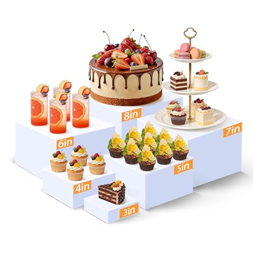 Lwuey Presentoir Aperitif Buffet Cube - Lot de 6 Rehausseurs de Buffet en Acrylique de 3 4 5 6 7 8 Pouce,Blanc avec Fond Creux,Supports de Buffet Mariage pour Traiteur Dessert Bijoux