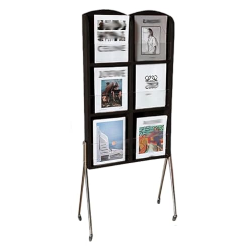 Whemyreat Présentoirs Support Au Sol Porte-brochures,Porte-revues,Présentoir à livres,Kiosque à Journaux Titulaire,3 feuilles A4 de largeur,Porterevues,Avec roues universelles (Biegen)
