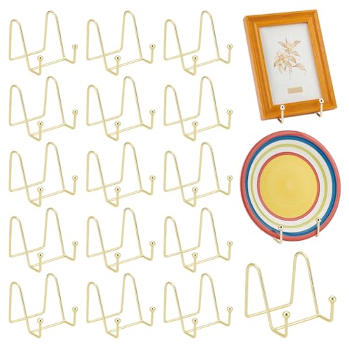 INTERWARM 16 support de Plaque Dorée de 3 pouces/3cm Support de Cadre Photo Carré en Fer Support Décoratif Présentoir pour Photos Livres Œuvres Artistiques Plateaux Plaques Cuisine Bureau Table
