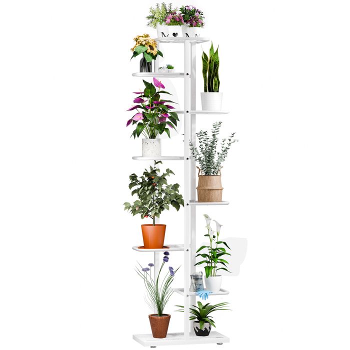 Porte plante en fer etagère de fleur 8 niveaux présentoire de jardin blanc