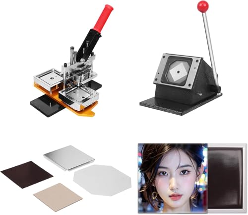 SULQING Machine à Fabriquer des Badges︱50x50mm Machine Presse Badge Press Machine︱Machine à Aimant Photo︱Presses à Boutons Carrés Et des Matériaux pour La Fabrication