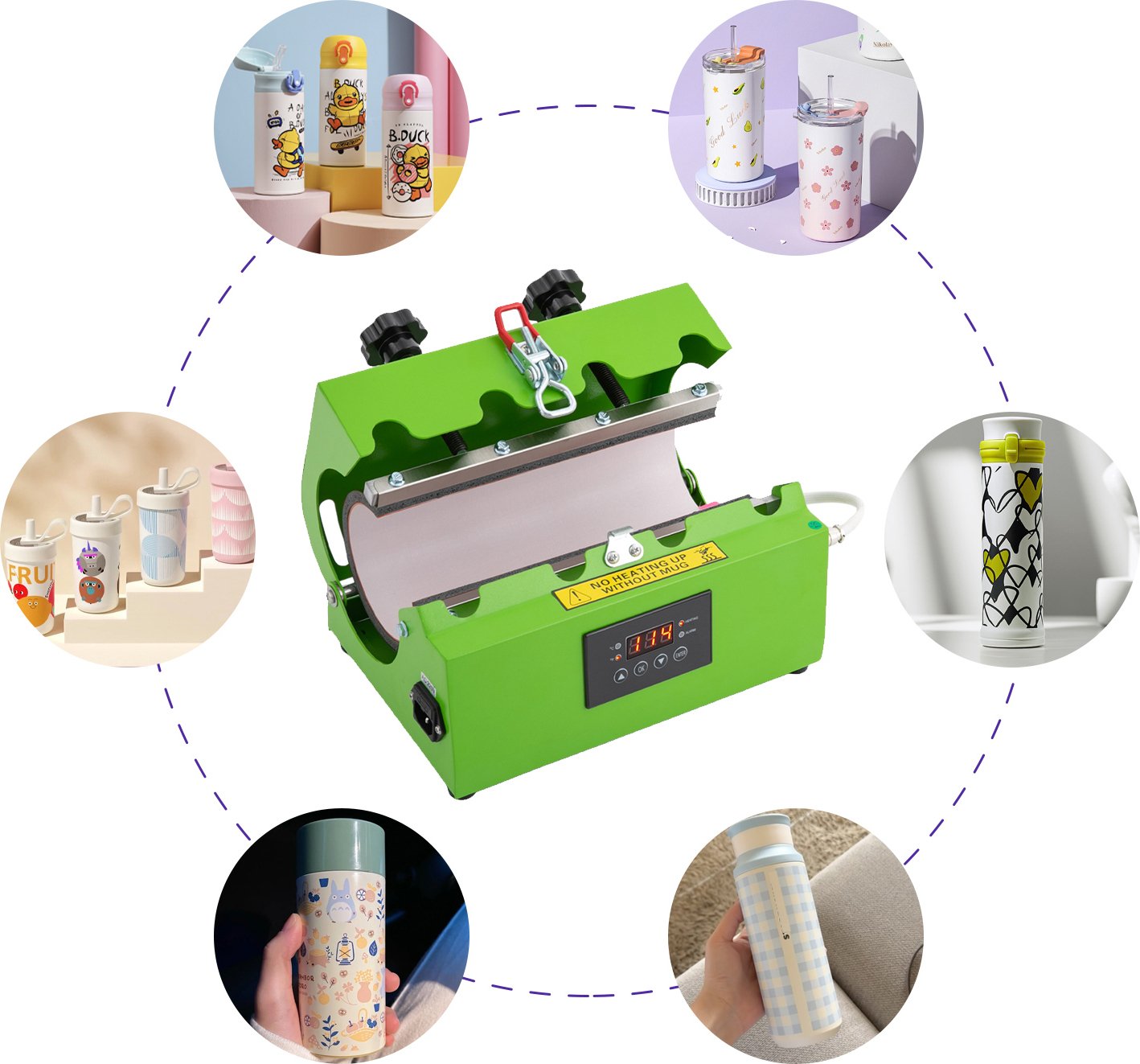 Machine à presser à chaud pour tumbler, Upgraded Tumbler Mug Heat Press Machine pour les coupes de bricolage etc, Vert