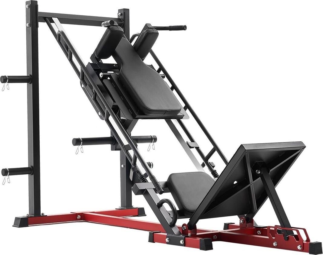 Presse à Cuisses Professionnelle Machine Musculation Jambes et Hack Squat 455kg Appareil Réglable 185x120x140cm Rouge