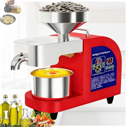 TIEOAXFT Presse à Huile électrique en Acier Inoxydable avec Chauffage Automatique for Un Usage Domestique, Pas de torréfaction nécessaire (Giallo)(Rosso)