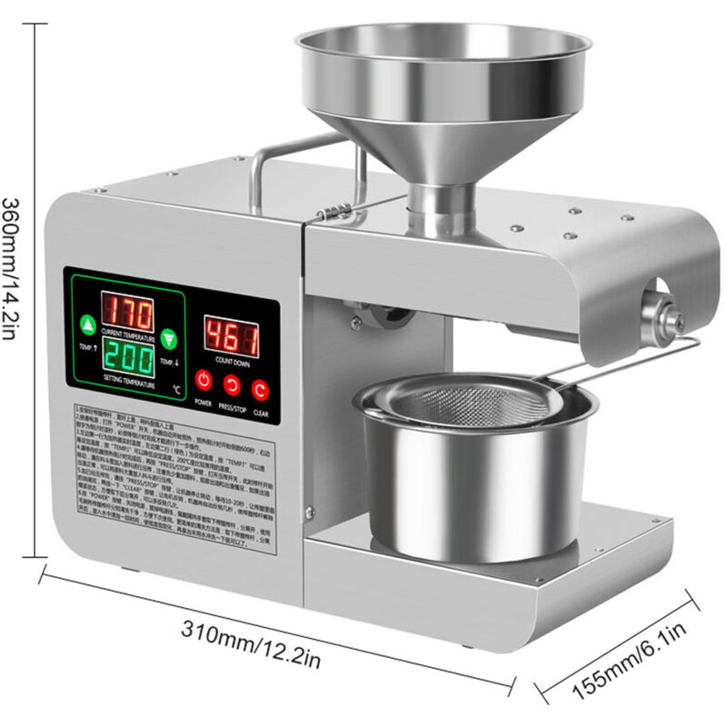 Presse à huile, en acier inoxydable, 610 W, moulin à huile électrique avec contrôle de la température, noix, arachides, presse à huile froide et