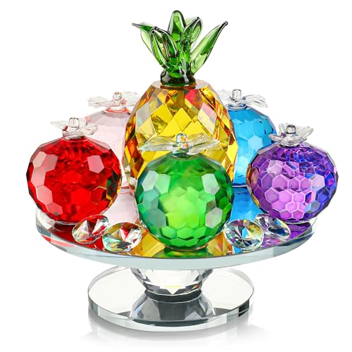 QFkris Mini Figurines de Collection en Cristal à facettes en Forme de Pomme et d'ananas, Presse-Papier en Verre avec Base pour décoration de Table à la Maison