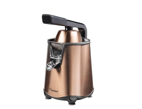 Bestron Presse-oranges et agrumes électrique, Inclut 2 cônes de pressage et un couvercle pour préserver l'arôme, Moteur à deux sens de rotation (gauche/droite), Capacité : 0.7 Litre, Couleur: Cuivre