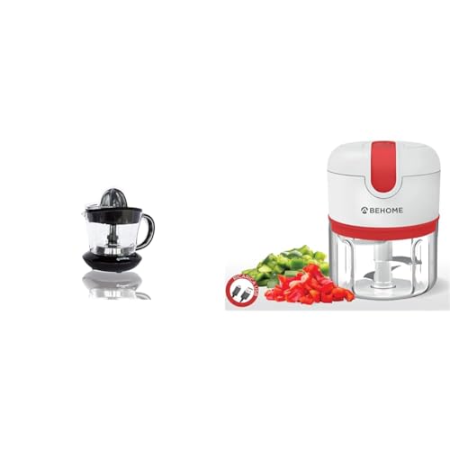Behome Presse agrumes électrique, petite contenance 700 ml, en plastique, mouvement bidirectionnel & Hachoir Rechargeable USB sans fil, Mini Robot de Cusine avec capacité 250 ml, lames en acier