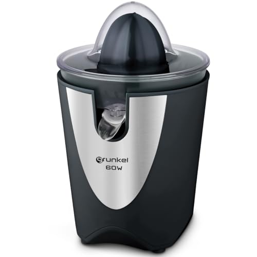 Grunkel - Presse-agrumes électrique pour oranges ou agrumes - Deux cônes interchangeables - Embout en acier inoxydable - Filtre à pulpe (noir)