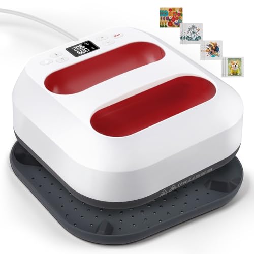 Presse a Chaud Textile, 22.5x22.5CM(9x9inch) Presse à Chaud Portable avec Minuterie et Contrôle de la Température (100-205°C), Transfert Rapide des Textiles, 12 Autocollants Inclus(Rouge)