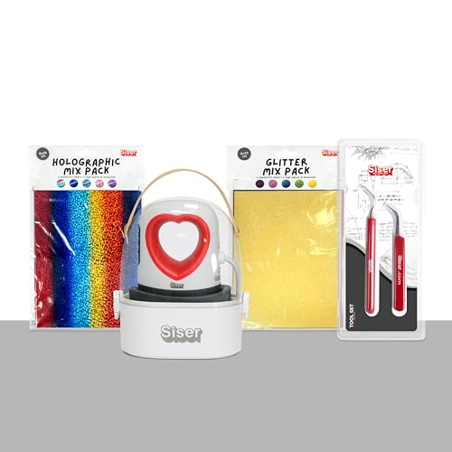 Siser Baby Press Pack Special Effects – Comprend une presse à chaud Mini, 10 feuilles thermovinyle, une pince à épiler, idéale pour les projets créatifs sur tissu et carton