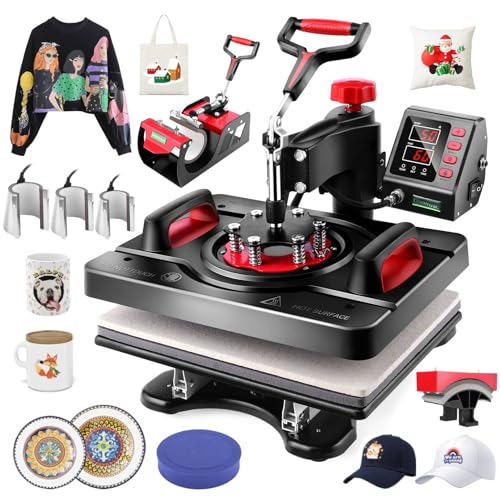 Presse à chaud 8 en 1-38,4 x 30,5 cm - Pivote à 360 ° - Multifonction - Pour T-shirts, chapeaux, tasses, assiettes, etc et projets en vinyle HTV