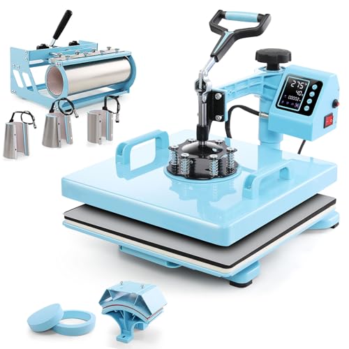 Presse de transfert 5 en 1-5 en 1 - Presse à chaud professionnelle multifonction avec embout pour gobelets, pivotant à 360 ° - Machine à sublimation DIY pour t-shirts, chapeaux, tasses, tasses et