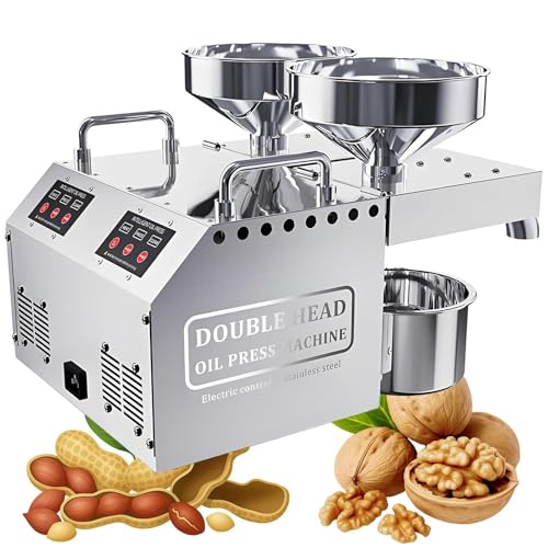 AityBuy Presse à Huile Double Tête, Extracteur D'huile électrique Chaud/Froid Commercial en Acier Inoxydable, Débit De 6 à 13 Kg/H, Presse à Huile Automatique Chaud/Froid