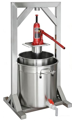 Pressoir à vin de fruits, 10 litres (2,6 gallons), pressoir manuel en acier inoxydable pour la production de cidre (pomme, vin, miel, carotte, orange, baies, légumes), fournitures et équipements inc