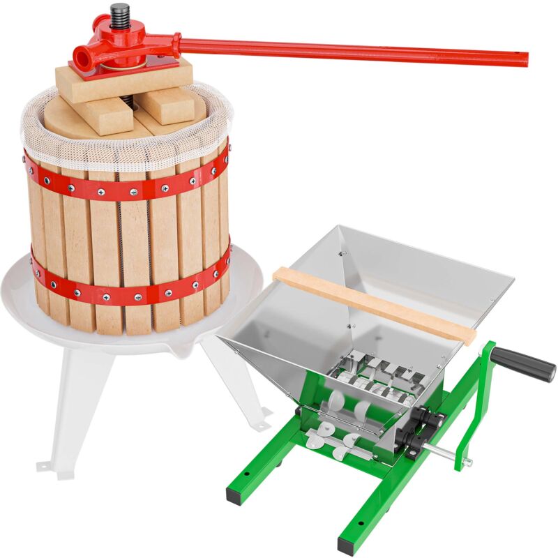 Wiltec Kit Presse et Broyeur à fruits – capacité 7 L / 12 L – avec Entonnoir en acier, Panier en hêtre et Torchon Sac de filtrage – Pressoir manuel