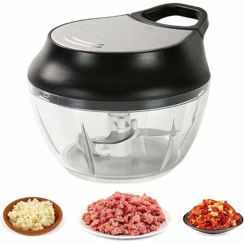 Hachoir manuel , Hachoir à oignons,Hachoir manuel a ficelle,coupe oignon,pour aliments,fruit,légume, viande, herbes, ail, salade, avec corde 500 ml