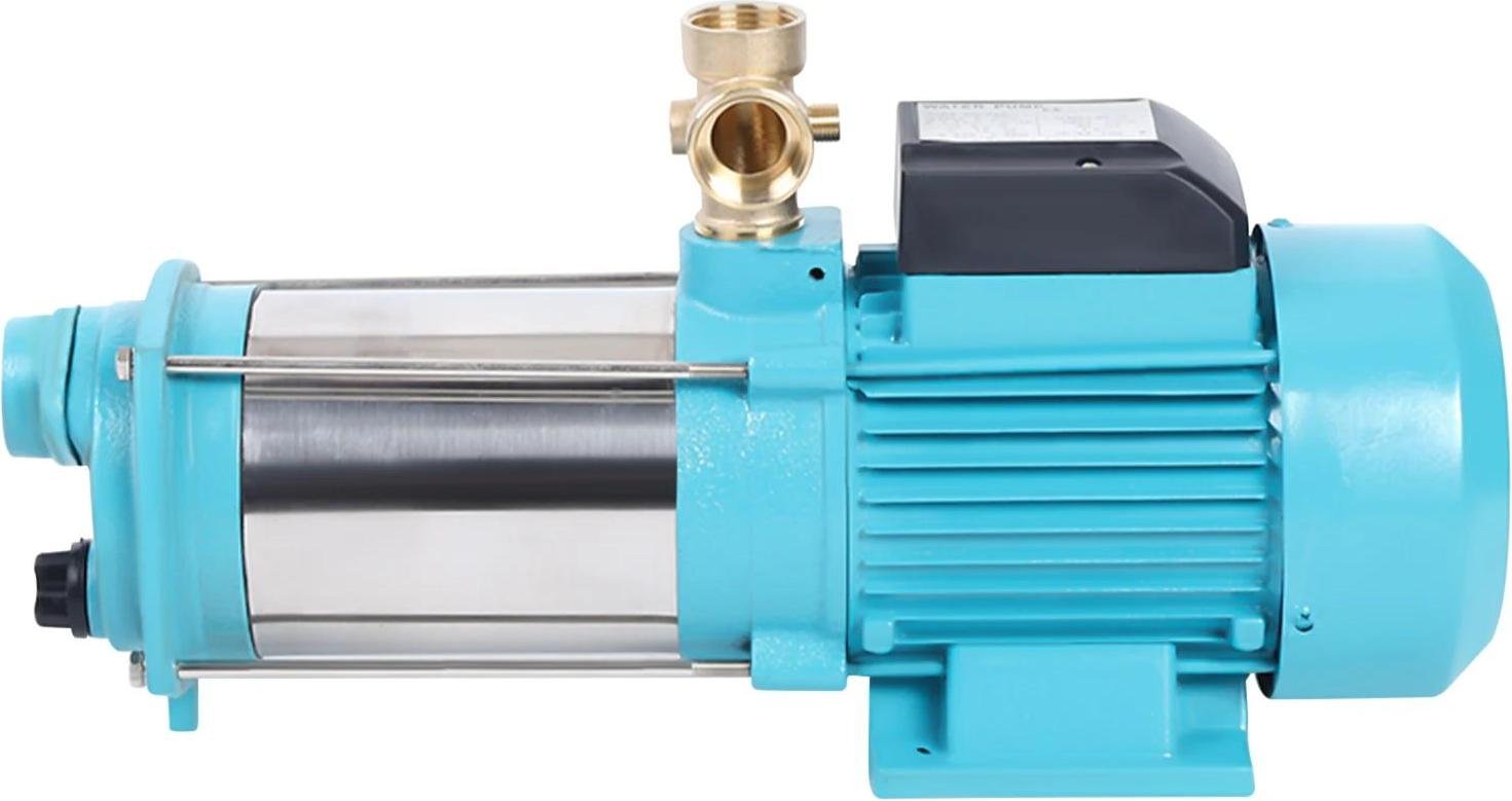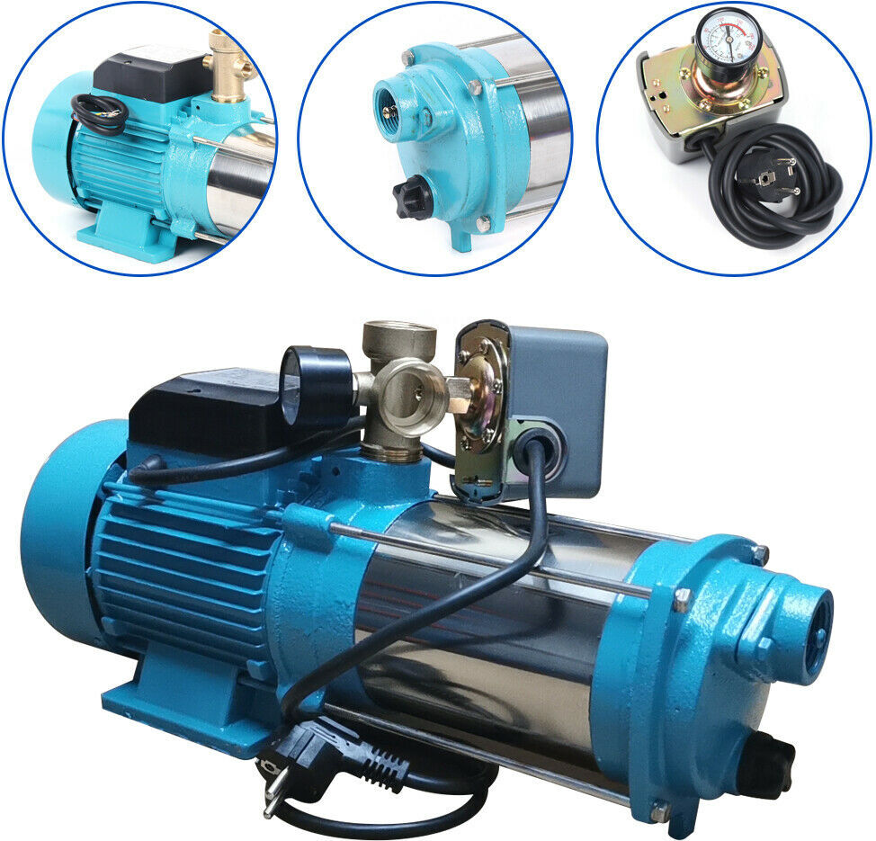 pompe à eau centrifuge 1300W en acier inoxydable, avec pressostat & manomètre, IP44, prise 220V EU, couleur cyan, pour l'irrigation agricole