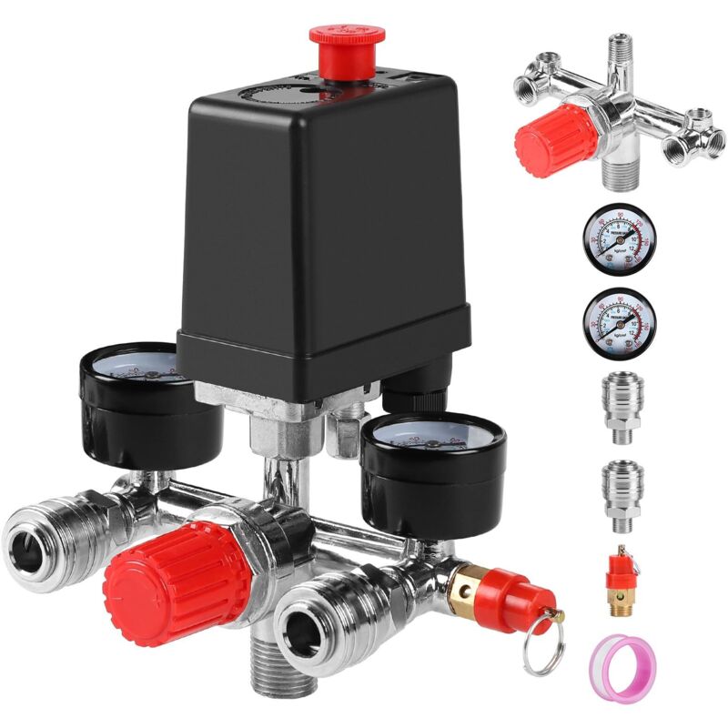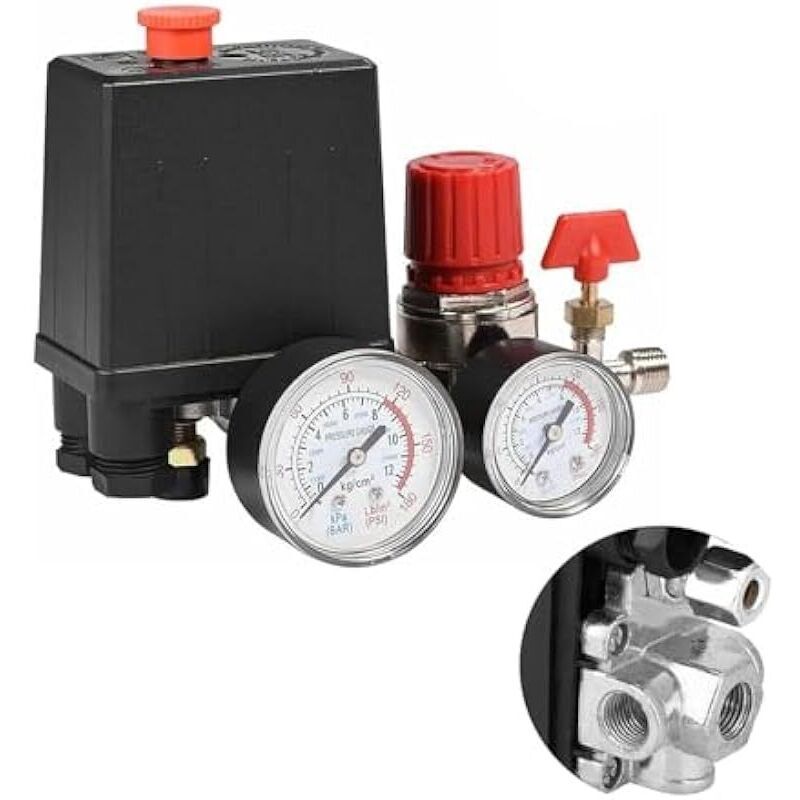 Ccykxa Compresseur d'air pressostat valve interrupteur compresseur d'air avec régulateur manomètre