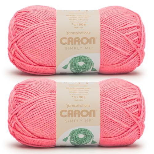 Caron Simply ME Pretty in Pink - Lot de 2 paquets de 200 g - 62% acrylique, 20% nylon, 18% laine - #5 - Bulky - 220 m - Tricot/crochet