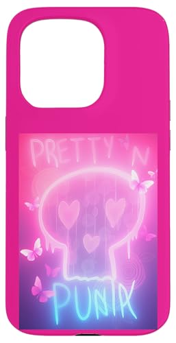 Pretty in Punk Pink Crâne Cœurs Papillons Esthétique Party Coque pour iPhone 15 Pro